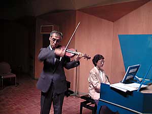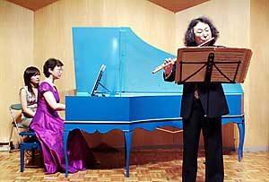 ピアノ・チェンバロ マイスター 高 康雄さんの制作されたチェンバロのお披露目コンサートです。満員の暖かいお客様とともに心地よいチェンバロの響きを楽しむことが出来ました。写真はリハーサル中の盛野さんと たか素子さんです。《写真追加しました。2006.9.13》